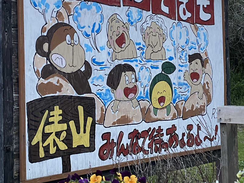 本日のお宿へ移動する時、俵山温泉の看板がかわいかった😁