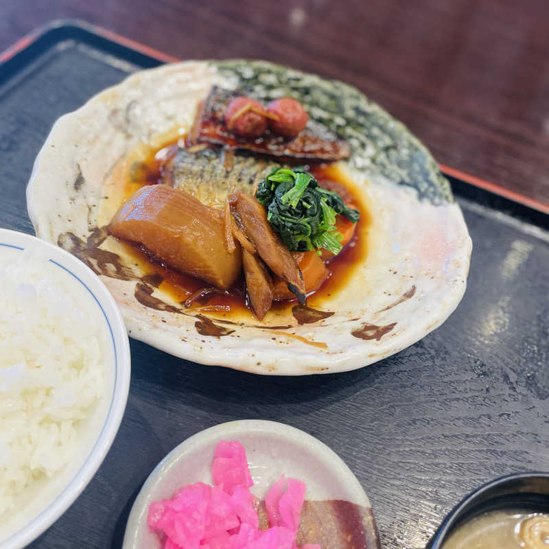 梅煮の鯖は珍しい!こってりとさっぱり!付け合わせの野菜も多くて嬉しい。