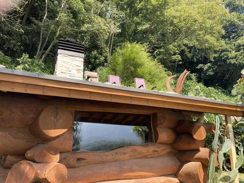 サウナ室上の整いスペースも、森に向かって休めるフラットチェアも最高。