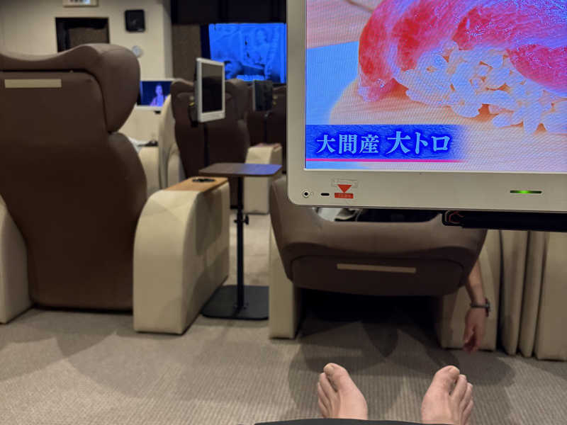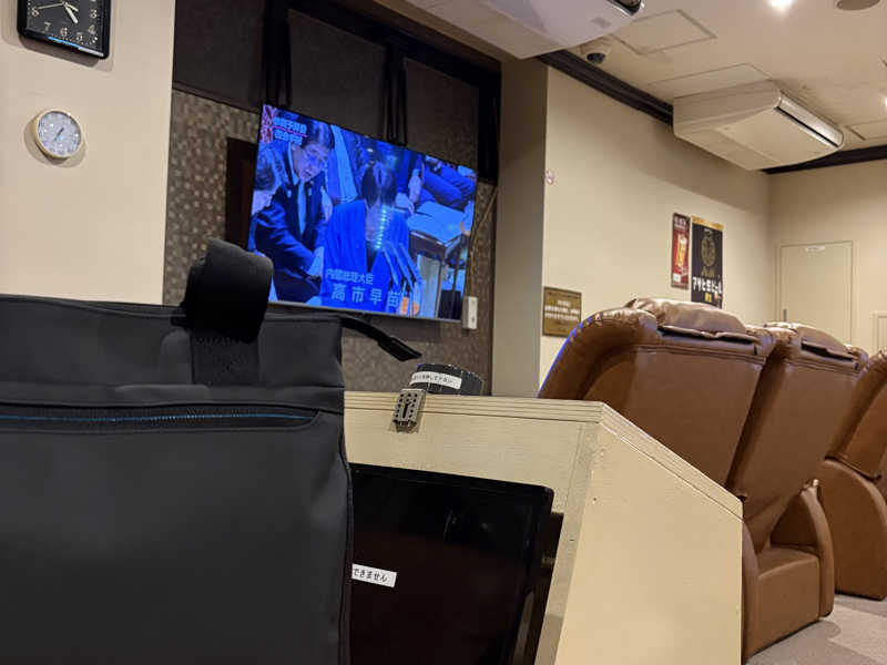 休憩所に行くと、なんとチェアーとTVモニターがリニューアルして新品に!