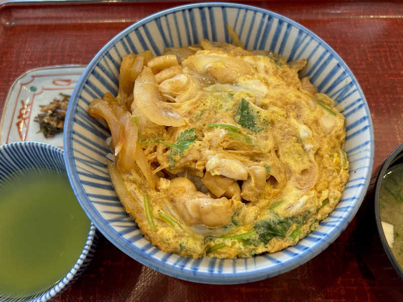 やっぱり惹かれるふぐの唐揚げに迷いながらも結局親子丼🥚 サウナ後に食堂で食べるご飯を楽しみに頭いっぱいになりながら今日もデトックス🧖♀️✨ 割と空いててこれまた最高