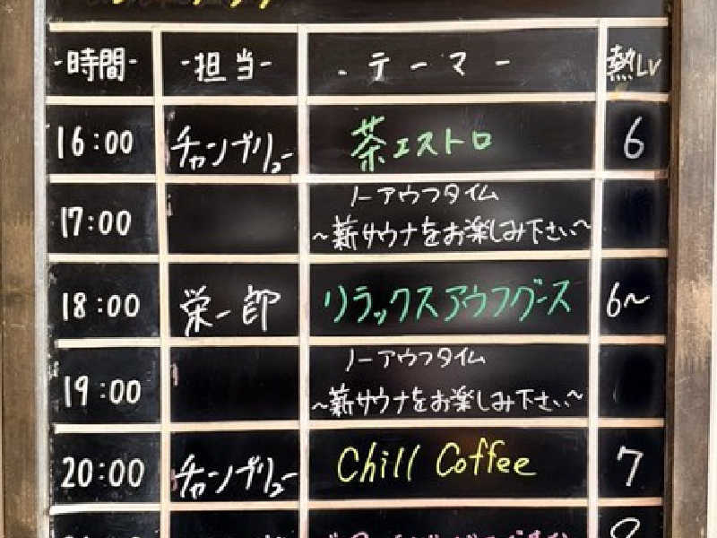 何度も受けてるはずなのに、何度でも受けたい演目。まずは薪入れからの緑茶ロウリュ。お馴染みのホワイトセージとラストは桜(?)のアロマとアツアツ熱波でバチととのいでした。
