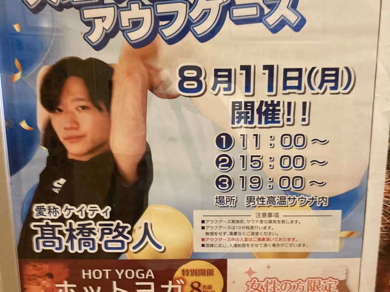 ところが時間になっても始まる気配がない。あれぇ?と思って浴場入口のポスターを確認すると、明日だった。1日間違えた…