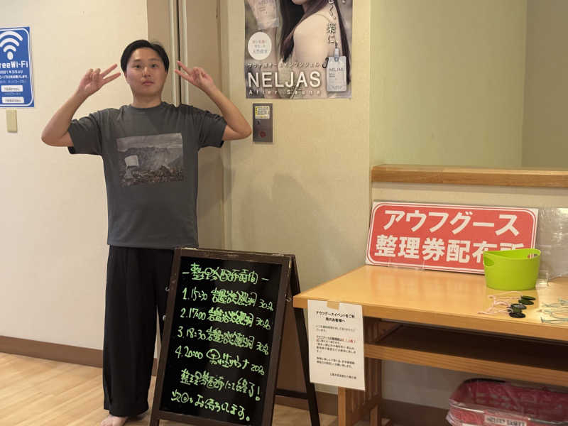 そう18時の回はヤジマさんなんです、ちなみに初受け🤭 口上から丁寧で、サブスクやらLINEスタンプなどのお得意な情報は伝えながら、ロウリュしてましたぁ✨