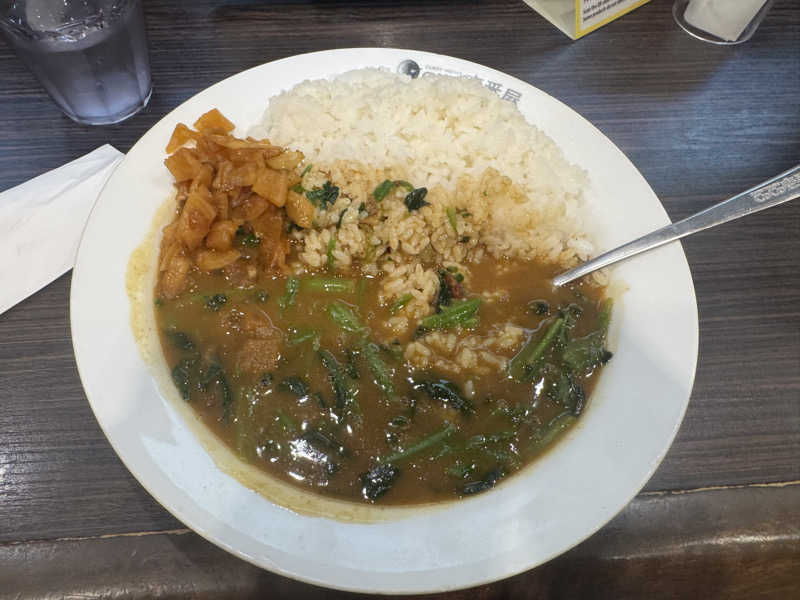 サ飯は朝カレー、並盛りor大盛りでも料金500円、一緒って😅 もちろん大盛りで🫡