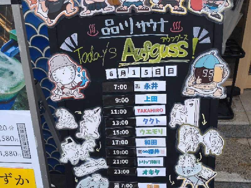 9:30スタッフロウリュはアクアマリンの香り…夏のイメージかも知れないが、車の芳香剤みたい…あまり好みでは無かった…