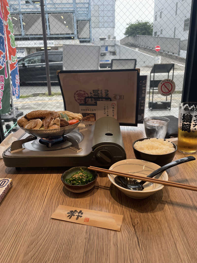 お風呂は無いのでたっぷり楽しんだら最後はシャワーで洗体、そして、念願のちゃんこ!