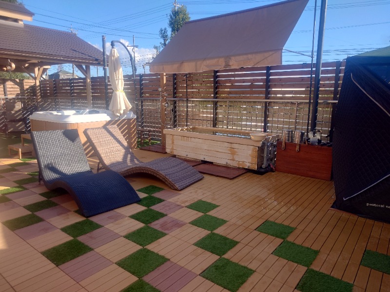 本日も貸切サウナエリア利用。人工芝の上にウッドタイルが敷き詰められ、おしゃれに変身していた。歩きやすくていいですね。しかしこの施設はいったいどこまでアップデートすれば気が済むのだろう、最高です(笑)