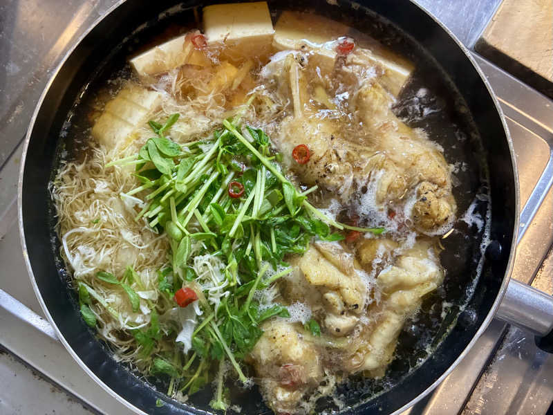 とくさしけんごさんのサウナ音楽を聴きながら、エアロウリュをしつつ、家サ飯を食べて、冷えた身体を温めました。
