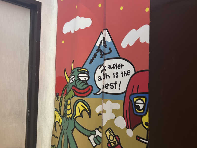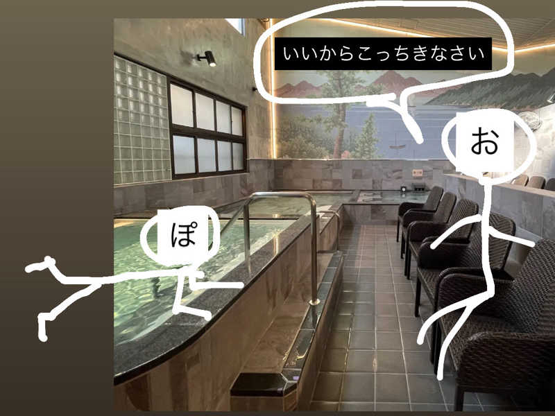 しっかり熱くてこちらもバイブラ湯。壁にあるグラグラの🔥(偽物)をじっとみつめる。おもろいなぁ〜笑
