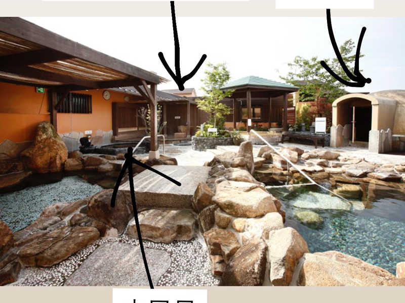 浅い風呂、深い風呂、ひのき風呂、五右衛門風呂(つぼ湯)