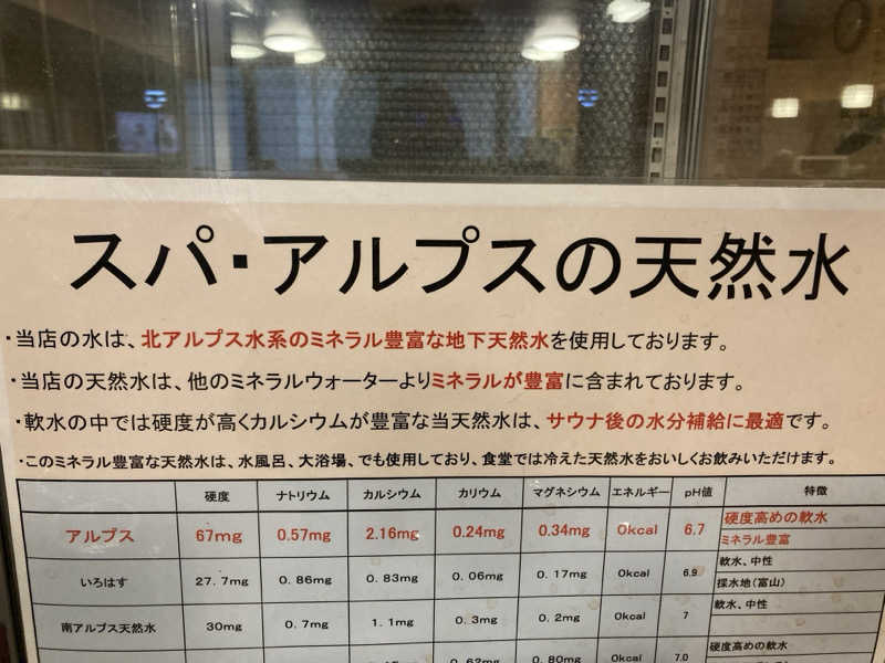 熱子さんが考える富山らしいサウナ②には水があったので、水のことは興味あったけど、改めてスパアルプスの水の成分表見てみた!