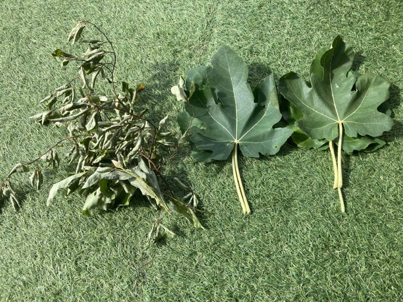 実験的にGuya villa産のいちじくの葉っぱ(フレッシュなもの)をサ室で乾かしてみたら、葉っぱが丸まって、乾いてきてた!葉っぱによっても香りが違う?逆に乾いてないほうのやつが香ったりしてた笑😆