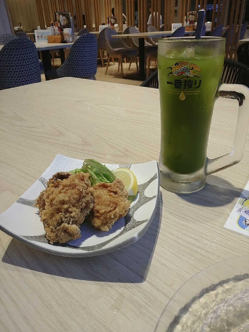 久々の平日王様👑! 休み明けだからか空いてて お風呂もサウナもまったり入れた\(^o^)/ 夕方から大雨降ってきて、 しばらく止みそうになかったから レストランでまったり飲み🍺 ちょうどハッピーアワーやってるって アナウンスしてたヾ(´ー`)ノ から揚げおいしかった!