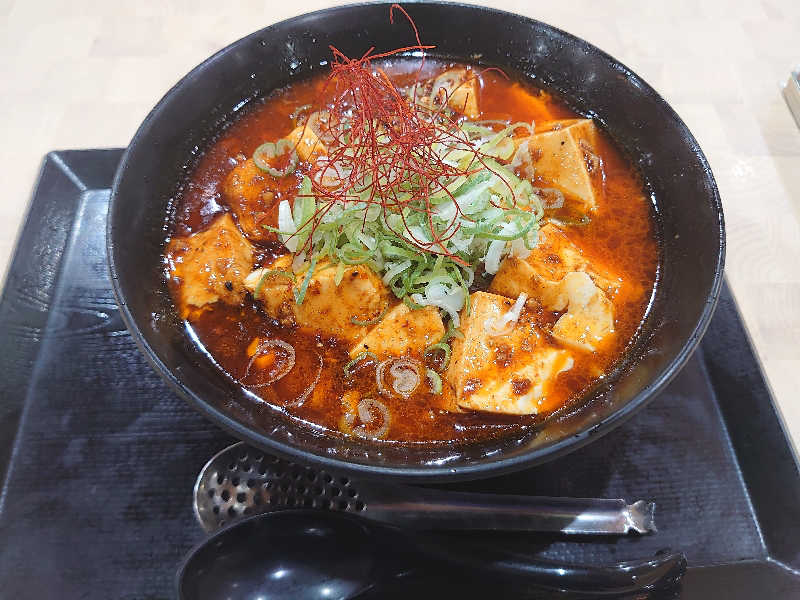 さて、ここの最大の強み露天スペースでの外気浴。夜風がめちゃくちゃ気持ちいい。正直1セットめでバッチリ整って満足したのだが、もう1セットし、そこであまりにもにお腹が空いたので食堂へ。ここのサ飯はやっぱ麻婆ラーメンよ。