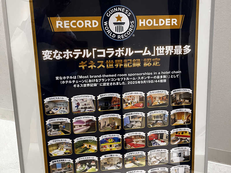 変なホテルは様々なコラボルームを企画しており、「コラボルーム世界最多」を誇りギネスにも認定されたそう👏