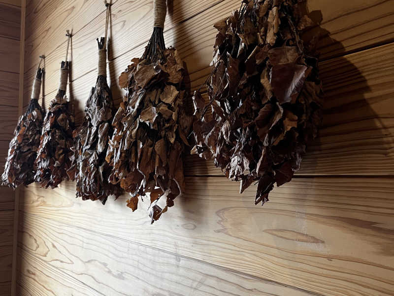 鹿児島県開聞町産のホウショウがサウナ室内にぶら下がっておりとっても優しい芳醇な匂いに包まれた🌿🥰鹿児島県で育まれた植物の生きた香りを楽しめるのはなんたる幸せか🤤
