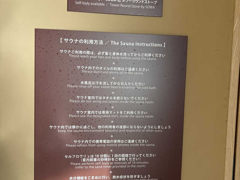 オートロウリュウが15分・35分・55分にあってしっかりロウリュウされ,頭から熱く重い蒸気がズドンと降りてくる