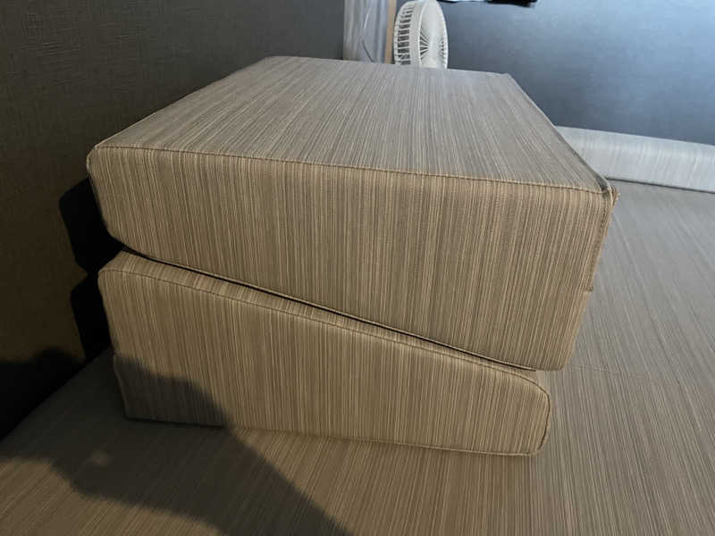 二つのソファを重ねて良い感じの高さの椅子にしてみたよ。天才!! ↓