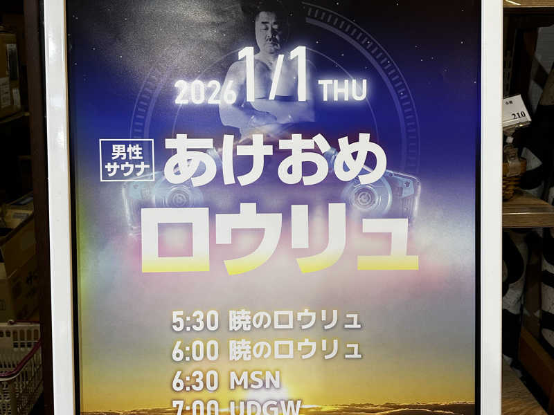 一言:あけましておめでとうございます!2026年1発目は草加健康センターのあけおめロウリュ!お年玉はないけどロウリュの量はサービスしてもらいました。今年も充実したサウナライフを楽しみます。それにしても熱かったぜ!