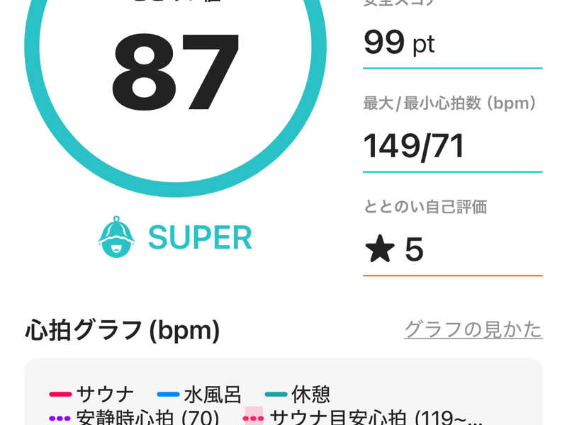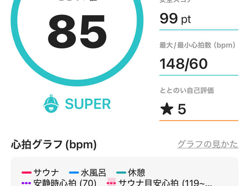 日曜9時半から久々の訪問。朝風呂時間よりは空いており、サ室も待ちなし。タイミングよく、3セット中2セットがインフィニティが空いており、しっかり整えました。2週間ほどサ活が空くのは1年以上振り、やはり心の整いにはサウナだと改めて感謝。ありがとうございました。