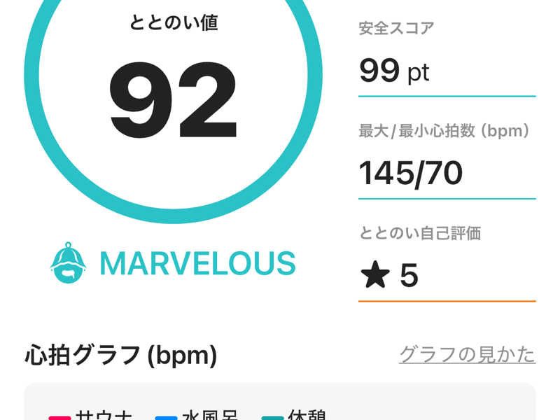 本日はかなり空いており、特に若者団体が少なく、浴室も静か。サウナ室、整い椅子もガラガラで最高に快適でした。バズーカ2セット、メディスン2セット、湿度高めなので発汗もよく、アマミも良く出て、最高に整いました。