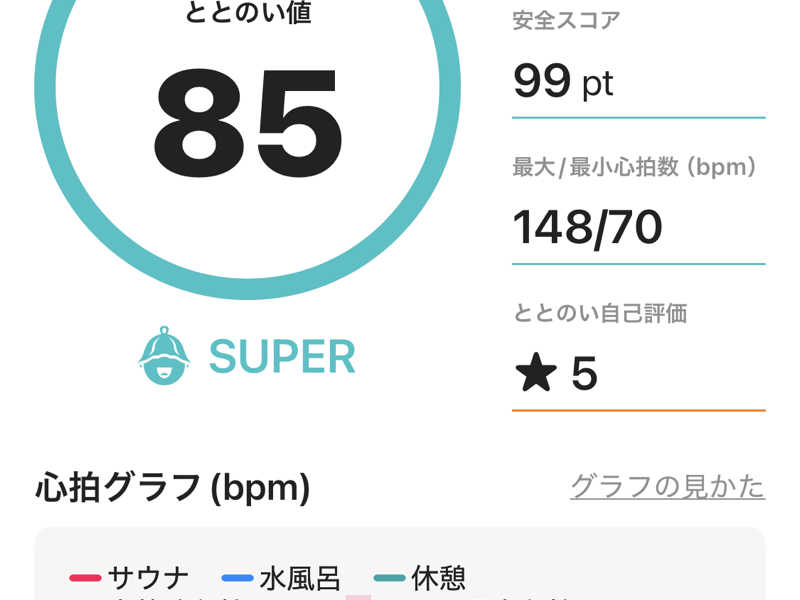 平日有休。10時半過ぎに初訪問。男性はsora。ラグジュアリーな雰囲気の流線型のコンセプト。サ室は温度はそこまで高くないが、湿度があり、じっくり蒸らされる。水風呂は17℃くらいかと。今日は天気は良いが風があり、外気浴は短め。お客様もほとんど居なく、サ室はほぼ貸切。とてもゆっくり過ごせました、ありがとうございました。