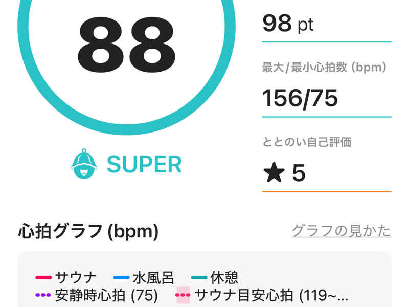 本日はかなり空いており、特に若者団体が少なく、浴室も静か。サウナ室、整い椅子もガラガラで最高に快適でした。バズーカ2セット、メディスン2セット、湿度高めなので発汗もよく、アマミも良く出て、最高に整いました。