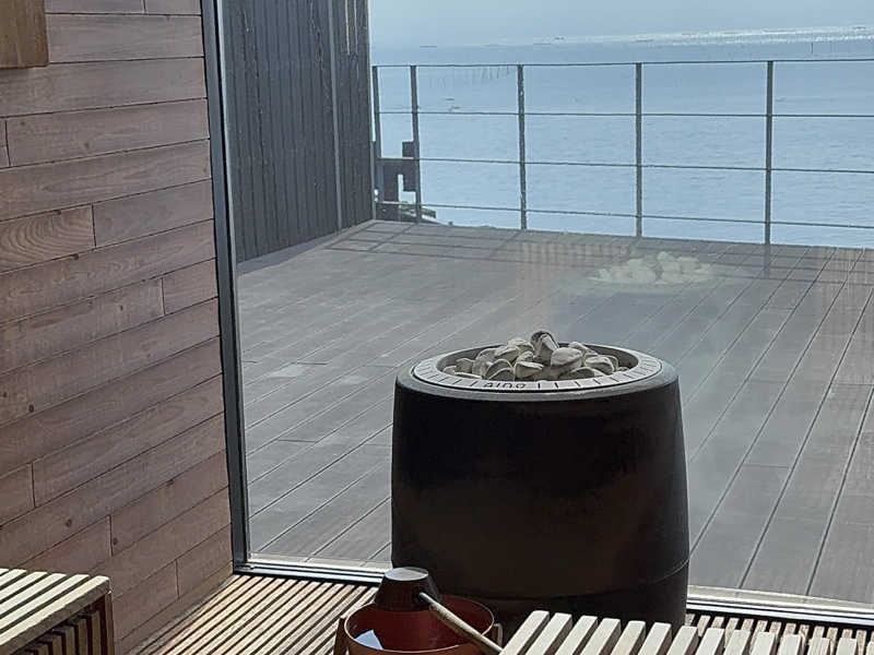 樹齢350〜400年のスプルースを贅沢に使用したサ室は、入った瞬間からただ者じゃない雰囲気。木の香りと熱の包み込み方が別格で、自然と深呼吸が増える心地よさ。