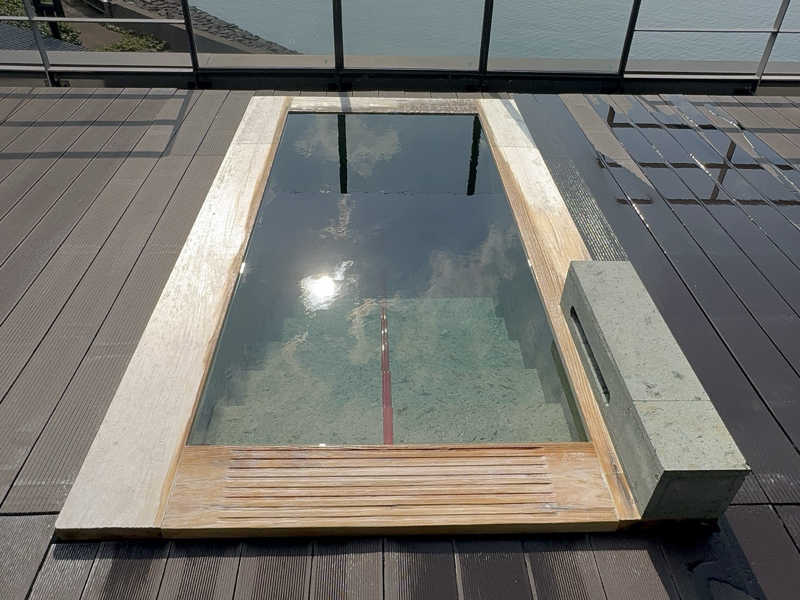 13℃ほどの冷たさなのに水質はとても柔らかく、「水風呂」というより自然に包まれる感覚。