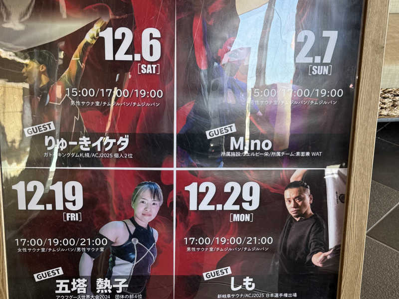 会計する時にアウフグース予約状況を確認したら、12月21日のしやけさんは予約いっぱい🈵になってました。
