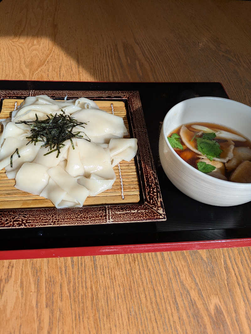 画像で見ると、モチと雑煮みたいですね!ヒモカワウドンはメチャ太でした。モチモチでおいしかったですよ!