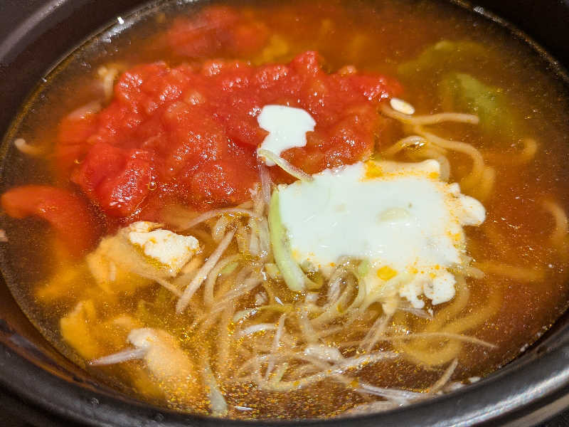 お昼にアチアチの石焼きカレーを食べてひと汗かいてから満腹のまま浴室へ向います。