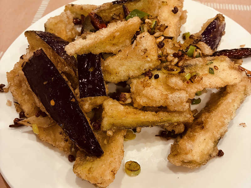 メニュー見て思い出した茄子の花椒風味炒めも、やはりビールがススム。