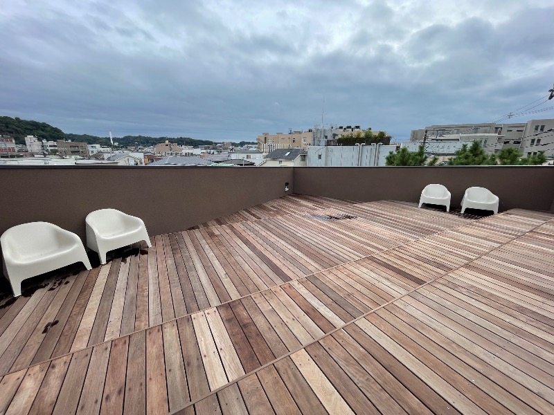 屋上休憩所のデッキに寝転び、プラネタリウムのような星空を眺めて外気浴
