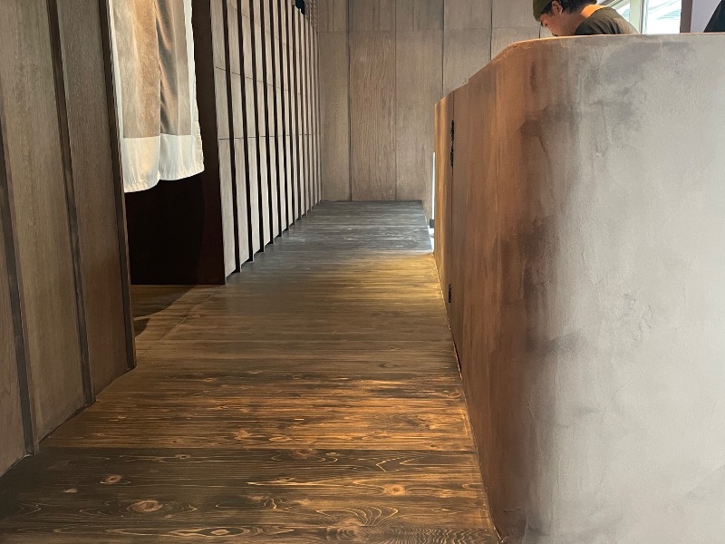 引戸を開けて入るとスペースの大半を占めるアツ湯のおかげでスチームサウナのよう