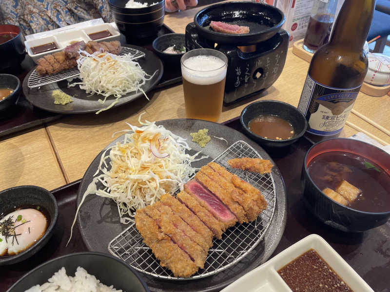 ランチは鎌倉駅西口の牛勝でサーロインカツ膳と上ロース勝膳をシェアしていただきました