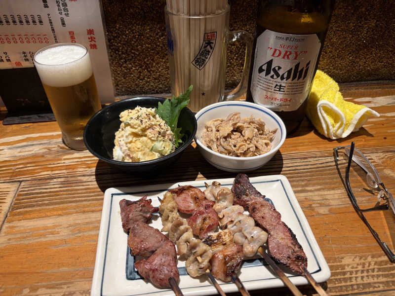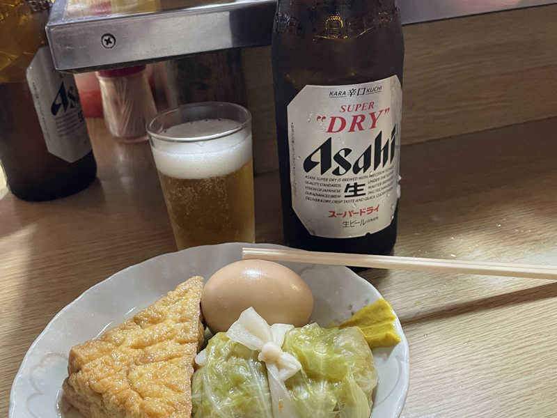 退館後はすぐ近くの大統領でもつ焼きと里芋焼きなどを瓶ビールで流し込む