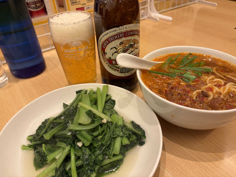 ベーシックに台湾ラーメンと青菜炒めをいただきました