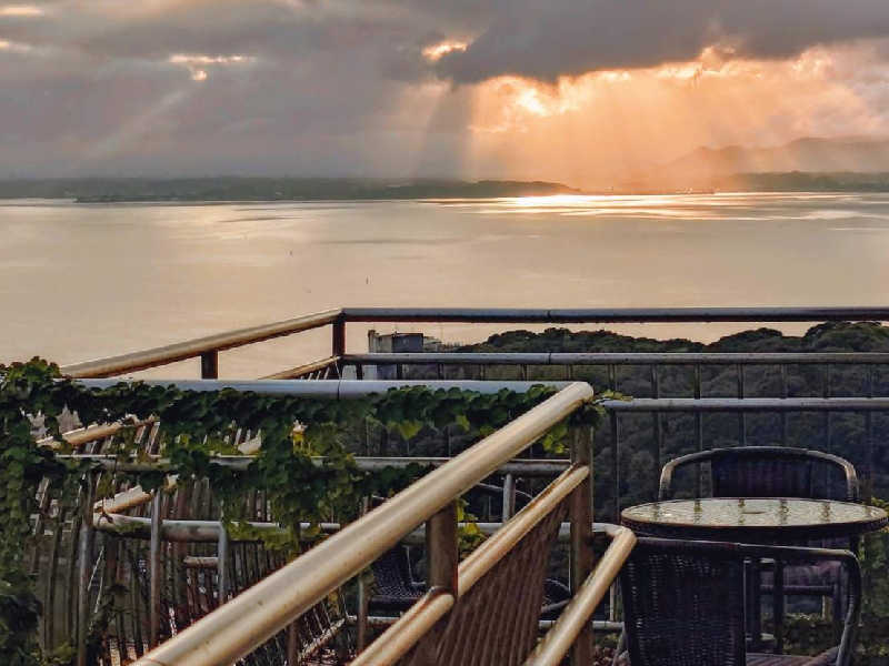 【サウナ】2人入るとキツイサウナですが、サイコ~😍自分の皮膚から出てくる汗を眺めつつ、浜名湖のヨットの練習を見つつ整いました💓