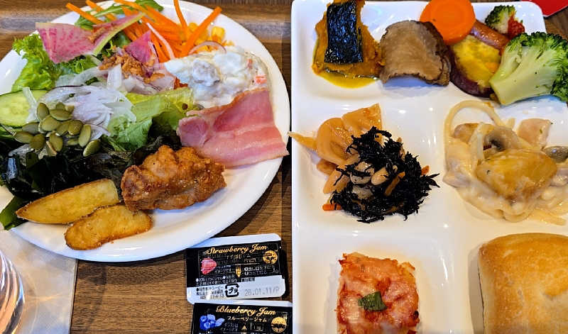 ホテルサウナで朝から入れるのは嬉しいですね‼️ いぶりがっこのポテサラ美味しそうですね👍