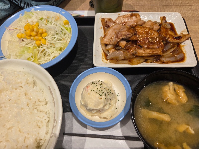 思いの外肉が多くて、ニンニクが効いていて、最後はソースともご飯の上に♥️