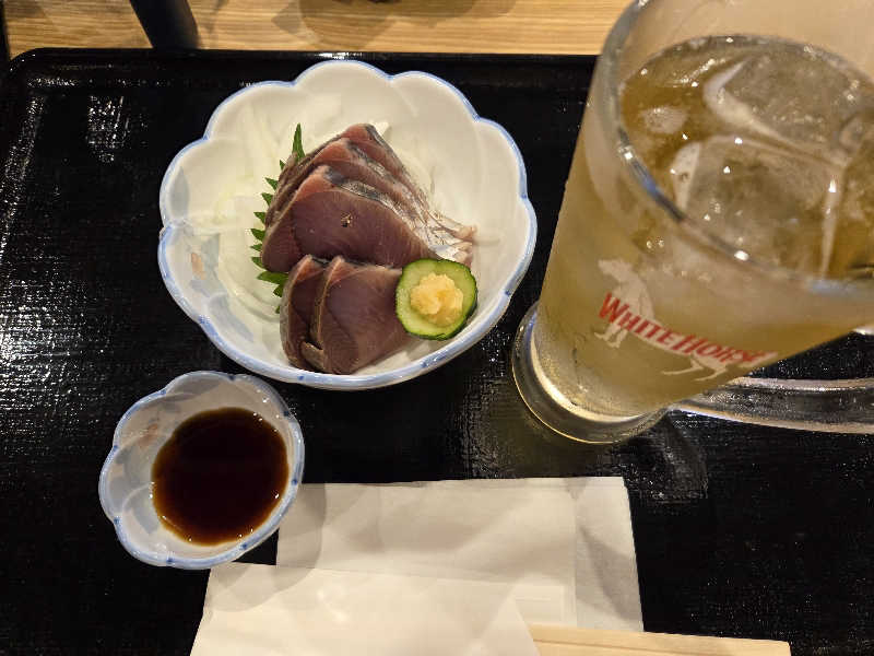 食堂で水分補給、鰹を食べて、今日の締めくくりが出来ました