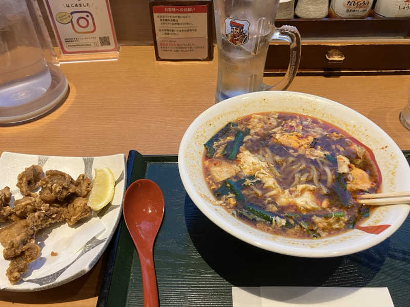 ・ドラゴンラーメンっていう辛いラーメンとハイボールの組み合わせが美味だった。
