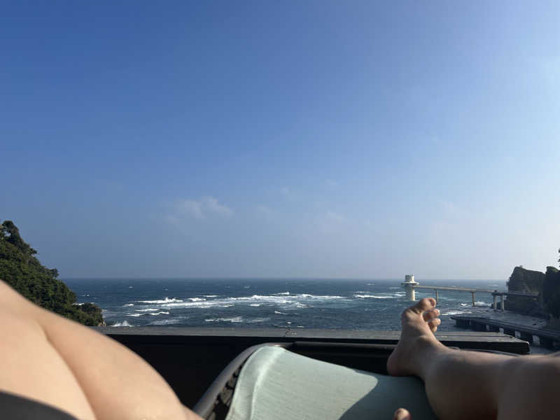 整いスペースからのオーシャンビューは格別で簡易的ながらもリゾート気分を味わえる