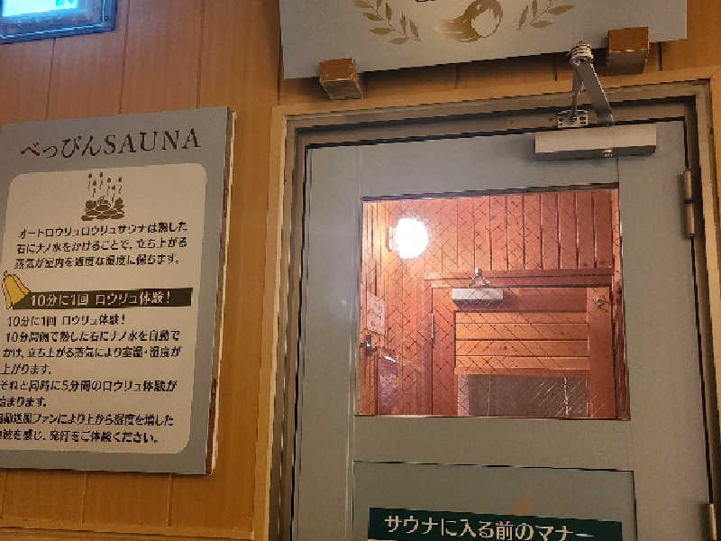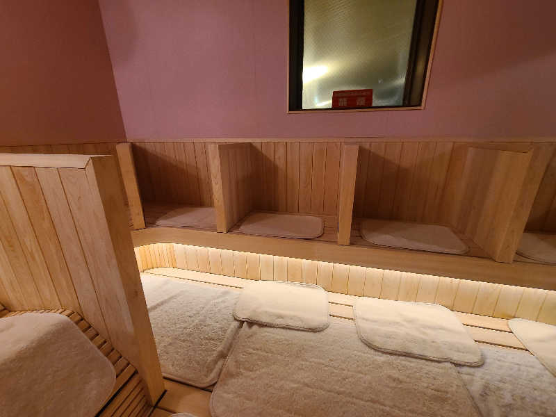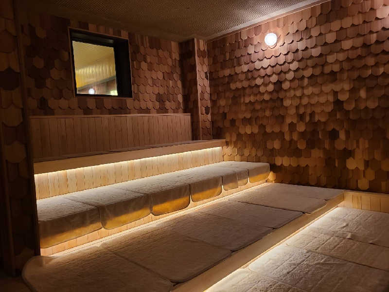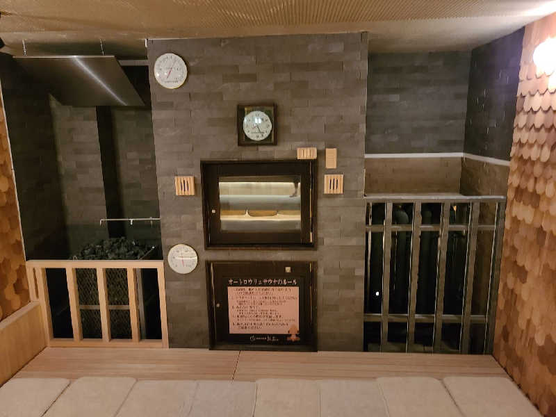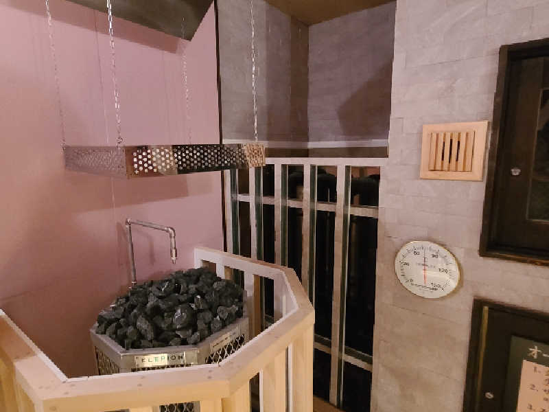 最高‼️ロウリュが10分ごとなのがいいし、入り口にカウントダウンされるのもいい。最上段部や真ん中、最下段で、それぞれのよさがあり、とても良かった。6~7分入り、程よい湿度と暑さで、全身汗💦だく、あまみも凄かった。新しくなった木の壁、とても可愛く、木の香りに癒されました。