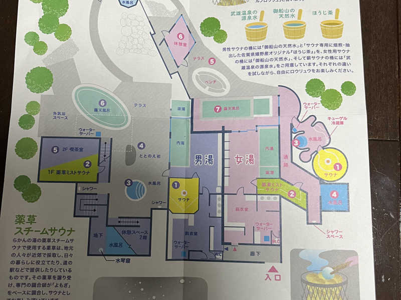 喫茶室では、無料のデトックスウォーター、塩プリン、などただ休むだけでなく、そこでも楽しめる。