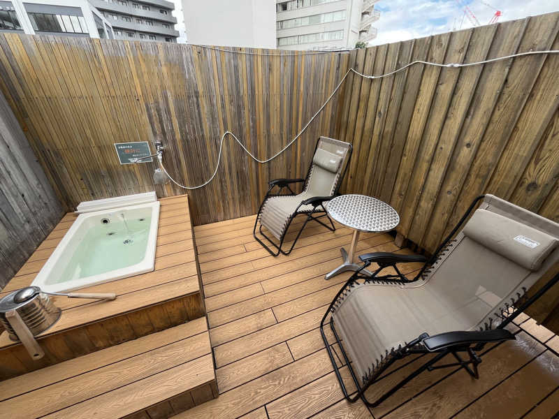 外気浴スペースもしっかりトトノイイスがあって混んでても待つことなくととのえた