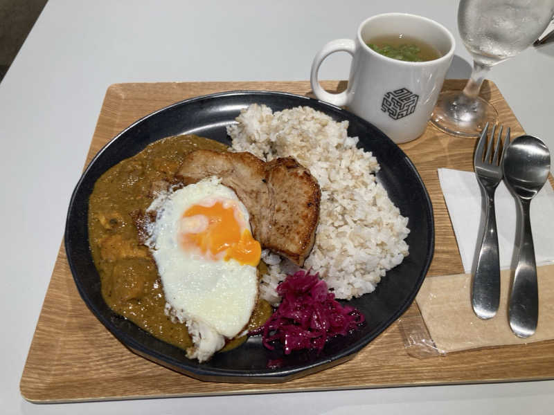 ワンドリンクもついてたので、サウナ後は2階でレモンサワーとおすすめのチャーシューカレーを。チャーシューの他にもお肉ゴロゴロしてて美味しかったです🍛