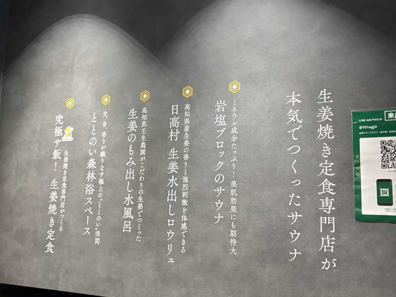 20時から、90分コース2,500円。30分の生生姜ロウリュ(美肌)と00分の焼き生姜ロウリュ(発汗)参加、デカ氷が浮いてる生姜水風呂からの、生姜水/生姜の味噌汁/生姜出汁/生姜タブレット/生姜ローションで内側外側から生姜補給して、1人瞑想スペースで飛んだ。ブラックフライデー先着37名の120分1,000円チケットも購入できて満足◎